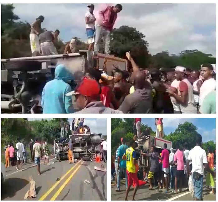 ¡Vuelve y juega! Saquearon un camión cargado de pescado que se volcó en la Vía al Mar