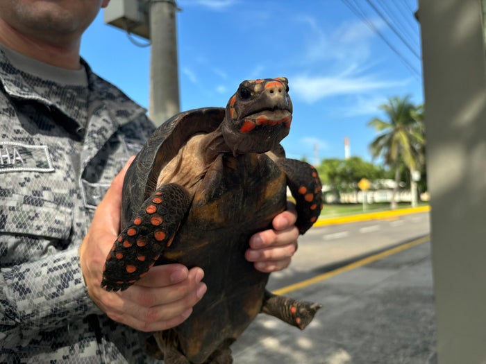 Tortuga morrocoy encontrada en Base Aérea de Malambo fue entregada a la Policía Ambiental