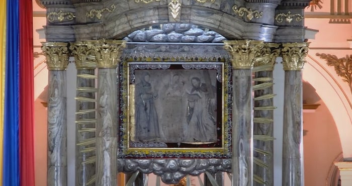 "Las joyas (Cetro y Corona) fueron completamente restauradas, en un trabajo de filigrana adelantado por un joyero muy reconocido en Colombia y para garantizar la seguridad del lienzo se diseñó una caja de seguridad hecha para el cuadro que no afecta la estética ni estructura del Altar pero que va a recubrir al cuadro con un mecanismo muy fuerte que resiste a cualquier ataque, a través de un vidrio de seguridad de última generación", señaló el rector de la Basílica.