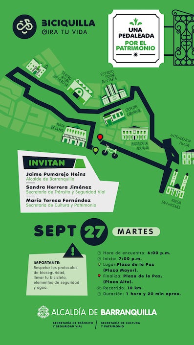 Las Secretarías de Cultura, Patrimonio, Tránsito y Seguridad Vial, informaron a la ciudadanía que como homenaje al mes del patrimonio, realizarán el ciclopaseo institucional “Biciquilla”, este martes 27 de septiembre de 2022, a partir de las 7:00 de la noche.