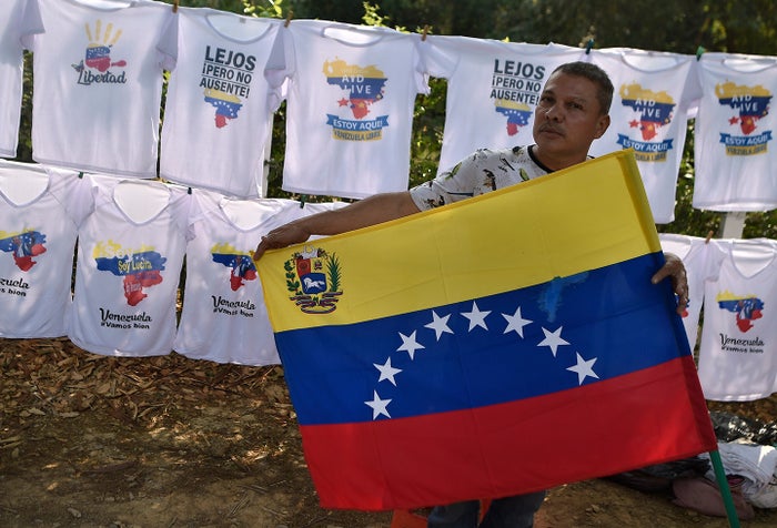 AFP Venezolanos vendiendo camisetas en pleno concierto Venezuela Aid Live