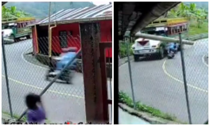 En la grabación se ve que por ir a alta velocidad, al momento de tomar una curva cerrada, se termina abriendo demasiado, invadiendo el otro carril, y chocando con un bus que venía despacio, y cae al piso. En el video es claro que fue cuestión de segundos para que el impacto no fuera mucho más grave.