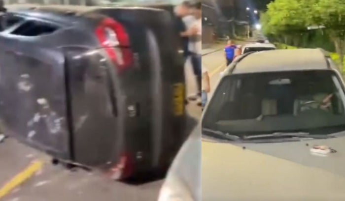 Varios ciudadanos de Cali reportaron en redes sociales un aparatoso accidente de tránsito en la Carrera 1 bis con Calle 56, donde un hombre en estado de embriaguez que se movilizaba en un vehículo se volcó luego de chocar contra tres automóviles que estaban parqueados en el sitio.