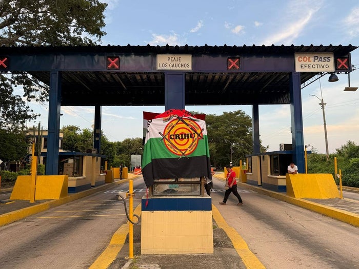 Los integrantes del Consejo Regional Indígena anunciaron una asamblea permanente para brindar apoyo al gremio arrocero, permanecen en el peaje Los Cauchos en la vía Neiva-Campoalegre donde levantaron las talanqueras para evitar el cobro del peaje.