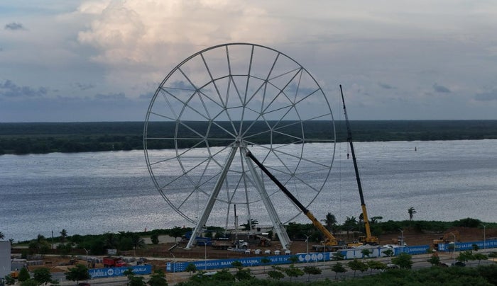 Las piezas que componen la rueda llegaron desde Italia, fabricadas por la empresa Fabbri Group, una de las más reconocidas del mundo en atracciones mecánicas. En Barranquilla, el montaje se adelanta con ingenieros y trabajadores locales, que se han encargado de armar esta gigantesca estructura bajo estrictos controles técnicos y de seguridad.