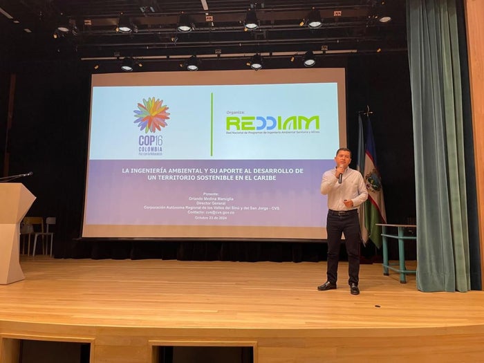 Durante la COP16 en Cali, el director general de la CVS, Orlando Medina Marsiglia, participó con una ponencia sobre el impacto de la ingeniería ambiental en el desarrollo sostenible del Caribe colombiano en el foro organizado por la Red Nacional de Programas de Ingeniería Ambiental, Sanitaria y Afines (REDDIAM).