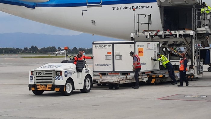 En la mañana de este miércoles llegó a Colombia un nuevo lote de 100.620 vacunas de la farmacéutica Pfizer, lo que le permitirá al país continuar avanzando a buen ritmo en el Plan Nacional de Vacunación contra el covid-19. Arribaron al Aeropuerto Internacional El Dorado de Bogotá hacia las 5:10 de la madrugada, en un avión de Líneas Aéreas Suramericanas (LAS), procedente de Panamá.