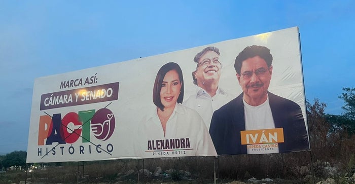 Según la denuncia, en la publicidad se observa la imagen de la candidata a la Cámara de Representantes Alexandra Pineda y del candidato presidencial Iván Cepeda, lo que, a juicio del denunciante, podría constituir una vulneración al principio de neutralidad política y a la normatividad electoral vigente.