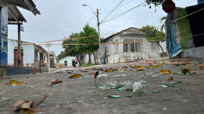 En el barrio Carrizal de Barranquilla, exactamente en la calle 49F con carrera 2F, los habitantes tuvieron que llenar de vidrios la vía para evitar que jóvenes se enfrentaran a palo y armas blancas durante la lluvia.