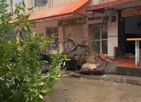"Aproximadamente a las 2:10 de la tarde, debido a las fuertes brisas se cayó un gigantesco árbol. Gracias a Dios no hay víctimas de este hecho", contó Marlenys Velaides, coordinadora del CDI.