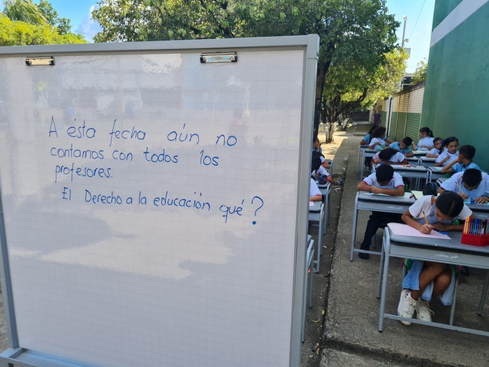 En el municipio de Tibú, los alumnos, en señal de protesta, están tomando clases en las calles, exigiendo a la Secretaría de Educación Departamental y al Ministerio de Educación, la contratación de personal para atender a decenas de estudiantes.