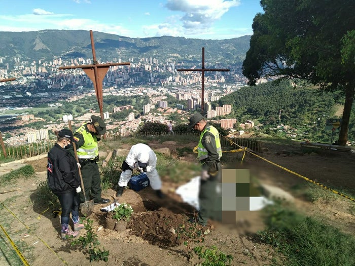 Los restos fueron exhumados por el Cuerp Técnico de Investigación con apoyo de la Policía Ambiental y la inspección de protección animal de la Secretaría de Seguridad de Medellín.