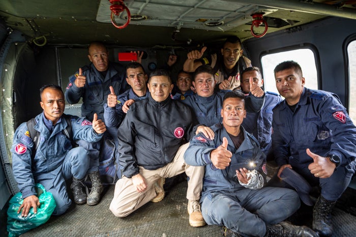 En helicópteros y cumpliendo con todas las medias de seguridad se adelantó el operativo, personal especializado del Ejército con elementos de seguridad, comunicación lograron llegar a la zona por los uniformados.