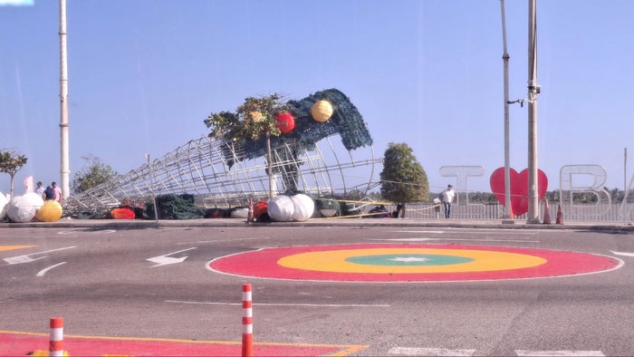 Fuertes vientos tumbaron árbol de Navidad de 7 metros en el Malecón del Río de Barranquilla
