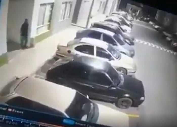 En el video se ve cuándo el hombre de unos 40 años de edad, cae estrepitosamente sobre el vehículo particular de color negro, hundiendo por completo el techo mientras se quejaba del dolor.