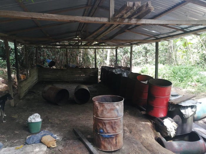 Según las autoridades pertenece al Grupo armado organizado Gao Eln, estaba oculto en medio de la maleza y espesa vegetación, en su interior fueron hallados diferentes insumos para el procesamiento del alcaloide tales como: 200 galones de gasolina y 90 de ACPM, así como gran cantidad de canecas y elementos empleados por el frente Juan Fernando Porras Martínez para dicha producción, con este procedimiento se afectan las finanzas de este grupo ilegal en 5.721.000 pesos.