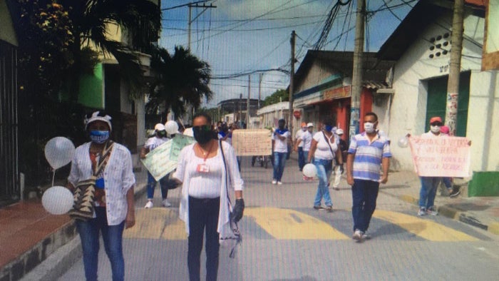Presidentes de las Juntas de Acción Comunal de barrios y sectores del municipio de Malambo, en Atlántico, adelantaron una jornada de protesta pacífica, para exigirle a la alcaldía, cumplimiento en entrega de ayudas, beneficios y otros requerimientos para mejoras de las JAC y la población, en medio de la actual coyuntura sanitaria.