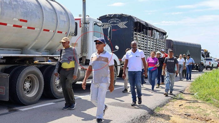 Arturo Casaviedes, líder de la protesta. A esta hora la vía Troncal de Oriente permanece cerrada y con largas filas de vehículos debido a esta protesta que ya completa varias horas.
