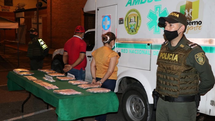 “Una ambulancia que llevaba en su interior estupefacientes. El operativo se desarrolló en el peaje a la altura de Lebrija, en este punto se abordó el vehículo que llevaba oculto dentro de los elementos médicos diez panelas de marihuana prensada, más de 100 gramos de cocaína y dinero en efectivo”, sostuvo el alto oficial.