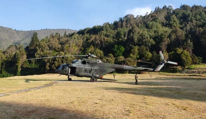 Con un helicóptero MI-17 de la Aviación del Ejército se están apoyando las labores de extinción del incendio forestal que se presenta en la región que ha afectado decenas de capa vegetal y animales que han salido de la zona.