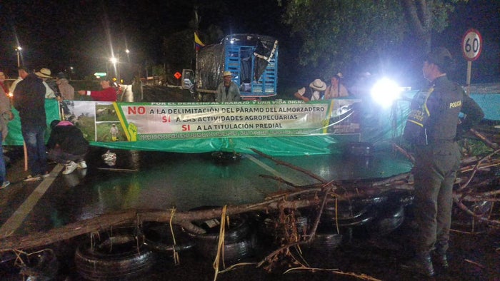 Las comunidades campesinas de la provincia de Pamplona, en su segundo día de protesta exigen la derogación de los límites de frontera agrícola definidas en el páramo de Santurbán, ante las dificultades que enfrenta la población para continuar con sus trabajos en la zona.