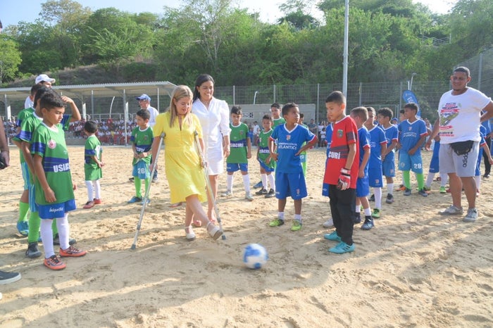 Con un gran concierto de la Orquesta de Vientos del Atlántico, la gobernadora, Elsa Noguera, entregó en Usiacurí la nueva cancha de fútbol Monumental de Chacanita, intervenida por el programa 'Parques para la Gente'. “Las obras en Usiacurí no se detienen, cada vez entregamos más proyectos al servicio de la gente, de todos los atlanticenses y visitantes que llegan a este municipio a conectarse con una gran transformación, gracias al color. Hoy entregamos la cancha Monumental de Chacanita, en superficie de arena, como lo quería la gente; con su cerramiento, alumbrado público, graderías, baños, camerinos, todo lo que requiere para un buen funcionamiento. En los alrededores también hicimos un embellecimiento con gimnasio biosaludable, zona de esparcimiento y un sendero peatonal que sirve para que lleguen desde temprano a hacer ejercicio”, destacó la mandataria.