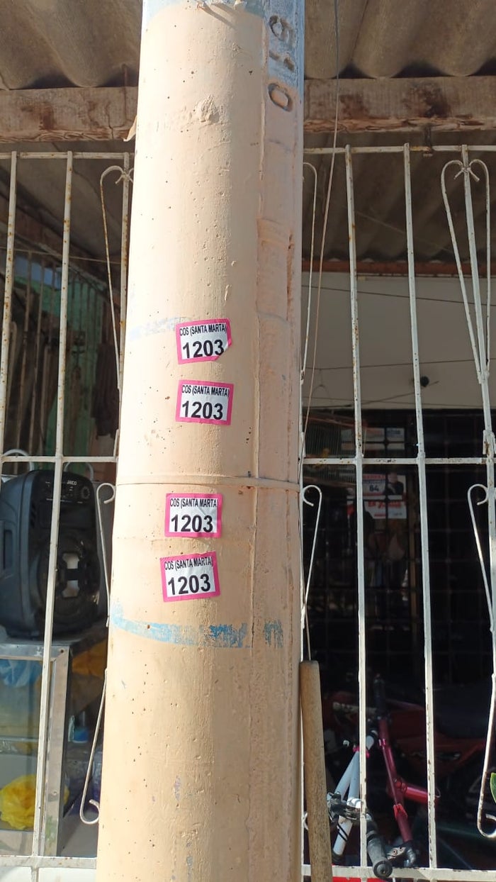 En videos de seguridad quedó captado el momento en que jóvenes acuden a una de estas viviendas y van pegando en varias viviendas stickers con el número 1203 y la palabra COS (SANTA MARTA), lo que genera inquietud en la comunidad al desconocer el significado y quiénes serían los responsables de marcar las casas.