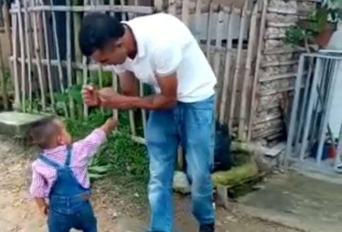 En video quedó registrada la manera como le enseñan a un menor de dos años a defenderse y a pelear con arma blanca. El suceso ocurrió en el barrio Porvenir, del municipio de Pitalito, Huila.