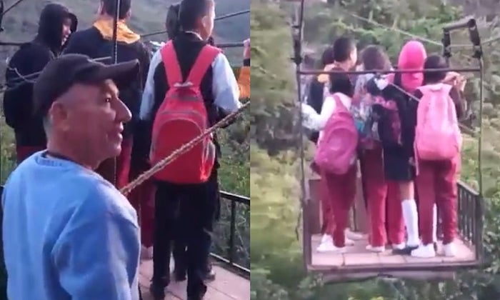 Sin embargo, a diario los estudiantes cruzan por esta zona, con el fin de asistir al colegio, es el único medio que tienen para movilizarse, no hay seguridad, de manera ordenada se suben y se sostienen de los lazos para poder llegar al otro extremo en donde está la ruta que los lleva al colegio.