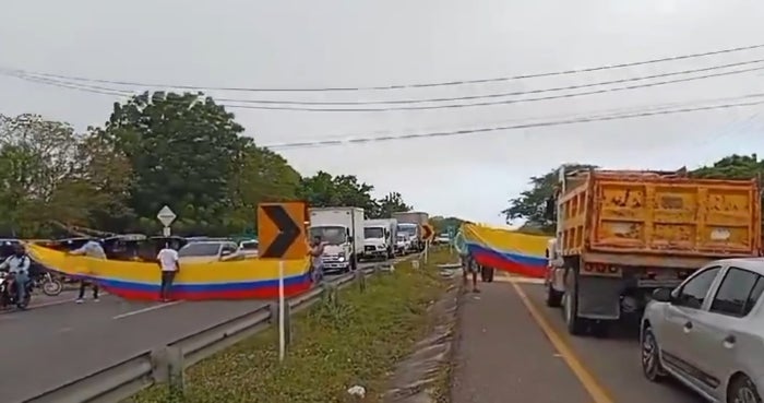 Por otro lado, en la vía Oriental, a la altura del municipio de Sabanagrande la comunidad levantó las banderas de Colombia y fue bloqueado el paso de los vehículos por la continuación del cobro del peaje que se ubica en esta zona del departamento.