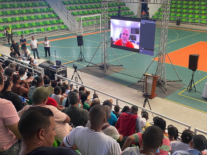 Desde las 9:00 de la mañana de este viernes se llevó a cabo en el Sugar Baby Rojas el acto de reconocimiento de responsabilidades por parte de los exparamilitares Salvatore Mancuso Gómez, Edgar Ignacio Fierro Flórez y José Gregorio Mangones Lugo, desmovilizados de las extintas Autodefensas Unidas de Colombia (AUC) y quienes son responsables de varios hechos de violencia.