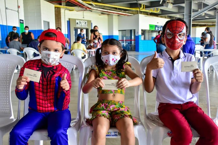 Disfrazados como 'Power Rangers', 'Spider-Mans', Supermans, 'Muñecas' y hasta 'Sirenitas', 3000 niños -entre los 3 y 11 años- acudieron a los 75 puntos de vacunación habilitados en Barranquilla para inmunizar a esta población menor con el biológico de Sinovac.