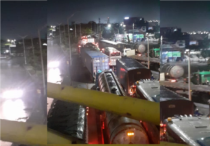 De acuerdo con la Policía, el bloqueo vial inició hacia las 4 de la tarde e impidió el flujo vehicular en ambos sentidos, lo que llevó a que se registrara una fila monumental de vehículos que se extendían por varios kilómetros; desde el puente Pumarejo hasta más allá de Sitionuevo (Magdalena).