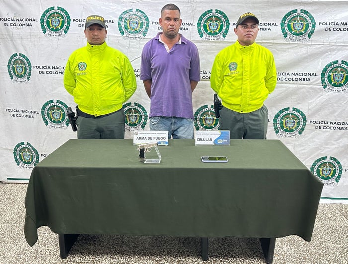 El operativo se llevó acabo en el barrio Rebolo donde se le encontró el arma de fuego tipo pistola calibre 7.65 milímetros y un celular que estaba reportado como hurtado por lo que fue capturado y puesto disposición de las autoridades competentes donde deberá responder por el delito de tráfico, fabricación o porte de ilegal de armas .