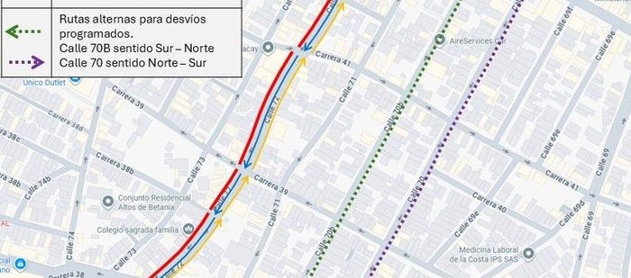 2. Cierre total de la calzada occidental sentido norte-sur de la calle 72 entre carreras 43 y 54 desde el 10 de septiembre hasta el 1 noviembre.