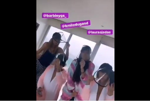 Además de aparecer bailando en medio de la celebración, en una de las imágenes se ve cómo, incluso, posan jugando con máscaras de protección.