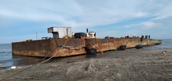 “Esa barcaza sufrió el embate de las olas, la estrelló contra uno de los pilares de hierro del viejo muelle y las olas la echaron hacia la orilla y encalló, además se llenó de agua y arenilla. Desde el 18 de julio realizaron esas maniobras de rescate y hasta hoy están culminando, sobre ella estaba la maquinaria sobre la cual harían los 200 metros del muelle, que está proyectados realizar en esa zona”, explicó el funcionario.