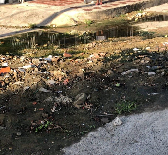 "Con la comunidad decidimos cerrar la calle porque esto nos está perjudicando demasiado. Por lo menos, mire ese charco que está ahí, es un charco que está cultivando mosquitos, dengue. Ahora en el mes de febrero le festejé los 9 años de del del hueco. Con pudín y todo, pero no sé, la alcaldía nos ha abandonado. El llamado de atención es que nos paren bolas, que cuándo nos van a regar la cuadra, que ya hemos esperado demasiado.", dice Magaly Molina, residente del barrio y afectada.