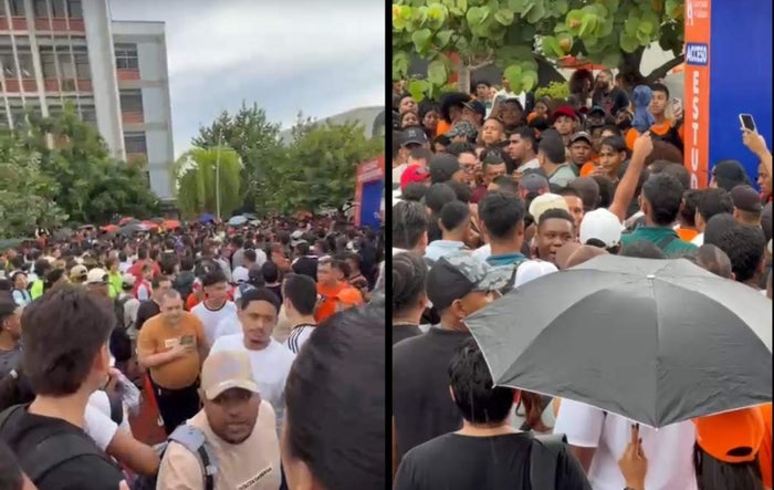 El incidente ocurrió alrededor de las 11:45 a. m., cuando un grupo numeroso de estudiantes, desesperado por las demoras y el limitado ingreso al recinto, decidió forzar su entrada tumbando la puerta principal. La presión fue tal, que la estructura de vidrio colapsó, provocando heridas leves a algunos presentes, que fueron atendidos por personal de la Defensa Civil y equipos médicos presentes en el lugar.