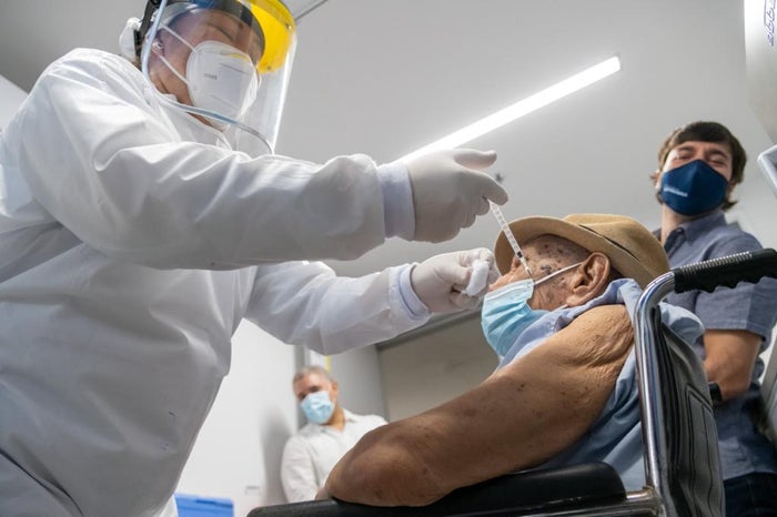 Adel Mass Arcón, un adulto mayor atlanticense, se convirtió en el colombiano número un millón, en recibir la vacuna de la farmacéutica Sinovac, contra el Covid-19.