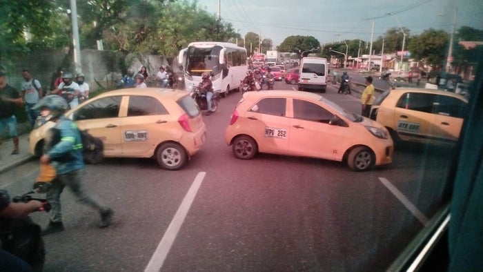 A la altura de la calle 30 en el municipio de Malambo, a la altura de la nevada de la empresa Transmecar y en la avenida Circunvalar con carrera 38, se dio inicio a uno de los puntos de mayor concentración de varios conductores de taxis que han suspendido el tránsito de vehículos por este corredor vial que conduce a los municipios de la Banda oriental y que, además, conecta con el aeropuerto Ernesto Cortissoz.