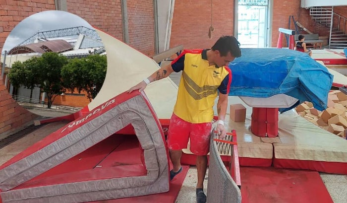 El mal estado de la cubierta del coliseo menor Eustorgio Colmenares Baptista en Cúcuta, tiene en peligro de dañarse los aparatos que son usados por los gimnastas para sus prácticas, por culpa de las goteras.