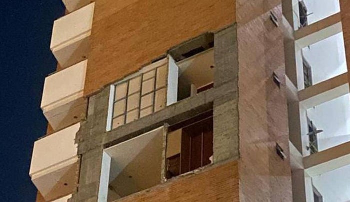 Daños se registran en la parte exterior del edificio, pero también en el interior de los apartamentos y balcones.