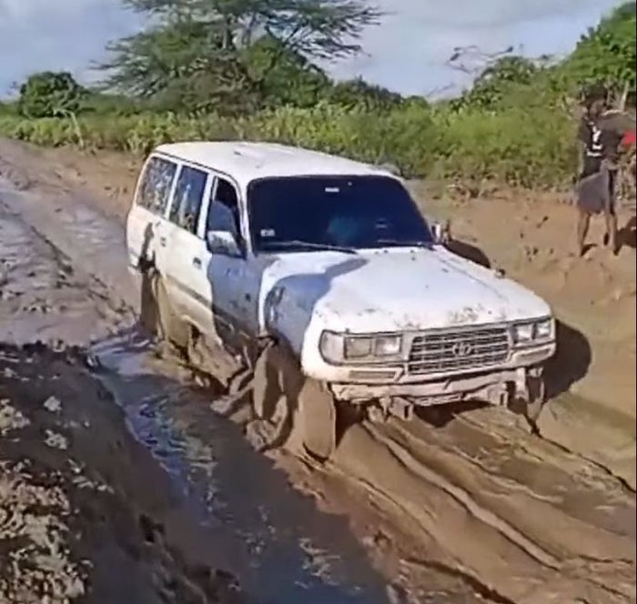 Mencionando que varios vehículos se encuentran atascados en el lodo, esperando que las condiciones de las vías mejoren para poder avanzar.
