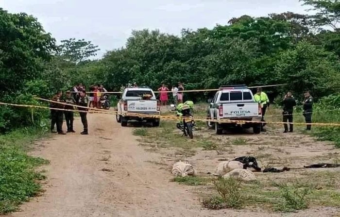 Los uniformados del Departamento de Policía de La Guajira, llegaron hasta el lugar de los hechos para acordonar la zona, y están a la espera de una comisión de la Dijín, a la capital del Departamento de La Guajira, para hacer el procedimiento del levantamiento de los cadáveres y la verificación de las identidades de los restos humanos desmembrados.