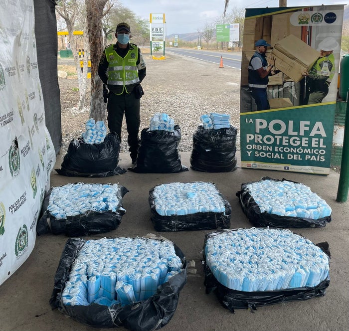 A través del Comando del Departamento de Policía Guajira y la Policía Fiscal y Aduanera, en coordinación con la Dirección de Impuestos y Aduanas Nacionales DIAN, se logró la aprehensión en vías del Sur de La Guajira, de 39.600 unidades de tapabocas, avaluados comercialmente en 80 millones de pesos, que no contaban con la documentación legal requerida.