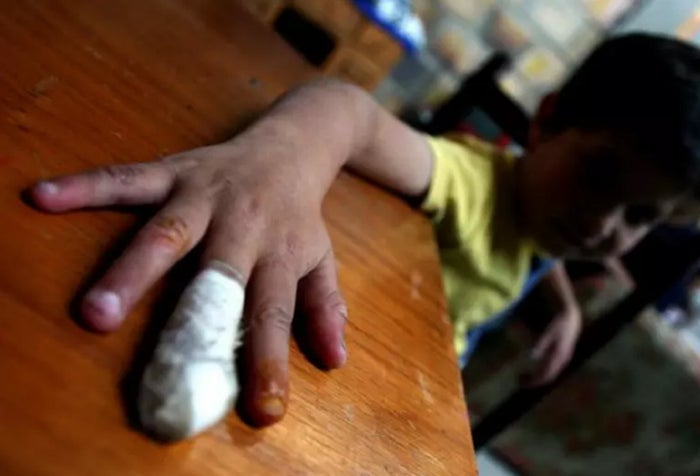 La explosión de este elemento le causó una lesión con amputación traumática en uno de los falanges de un dedo de la mano derecha y quemaduras de primer y segundo grado en otras partes del cuerpo.