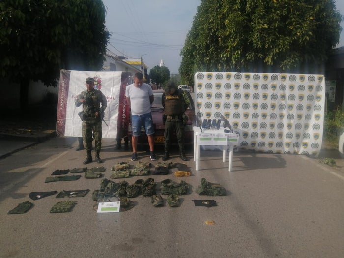 Dentro de las actividades de registro y control que adelantan tropas del Batallón Especial Energético y Vial N,° 12 de la Novena Brigada y los uniformados del Departamento de Policía Huila sobre las vías del Departamento, en aras de prevenir el paso de elementos ilegales o relacionados con algún delito, fue capturado un hombre transportando tres armas traumáticas y prendas de uso exclusivo de las Fuerzas Militares.