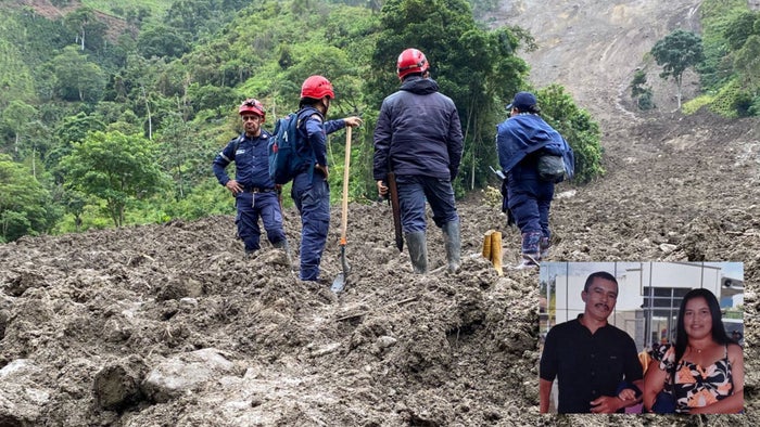 Más de 100 personas entre bomberos y comunidad hacen parte de la búsqueda de Ignacio Jiménez y Leydi Quinaya, la pareja que desapareció tras un deslizamiento de tierra en la vereda bajo Medianías en Saladoblanco.