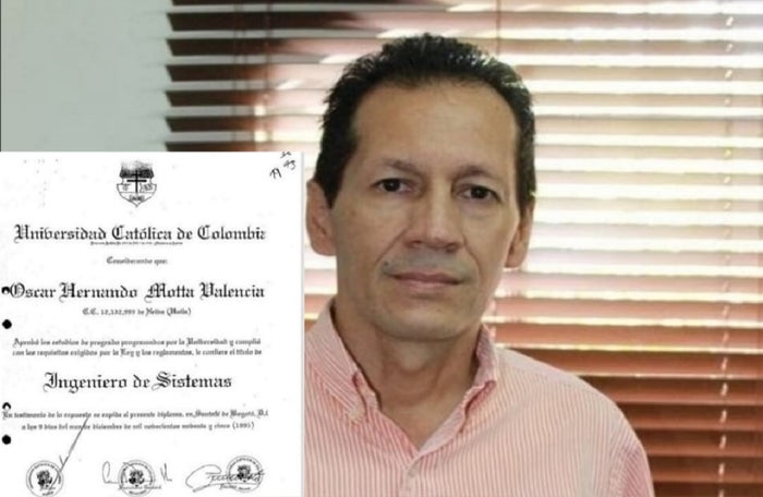 Asimismo, el diploma de grado adjunto a su hoja de vida que supuestamente certificaba que el hombre era ingeniero de Sistemas egresado de la Universidad Católica de Colombia, también resultó ser falso, ya que dicho título jamás lo obtuvo y sólo pudo culminar su formación académica para alcanzar el título de tecnólogo, sin dejar pasar el gravísimo error de ortografía plasmado en el documento en el que la palabra Universidad, estaba escrita con B- (Unibersidad)- y no con V.